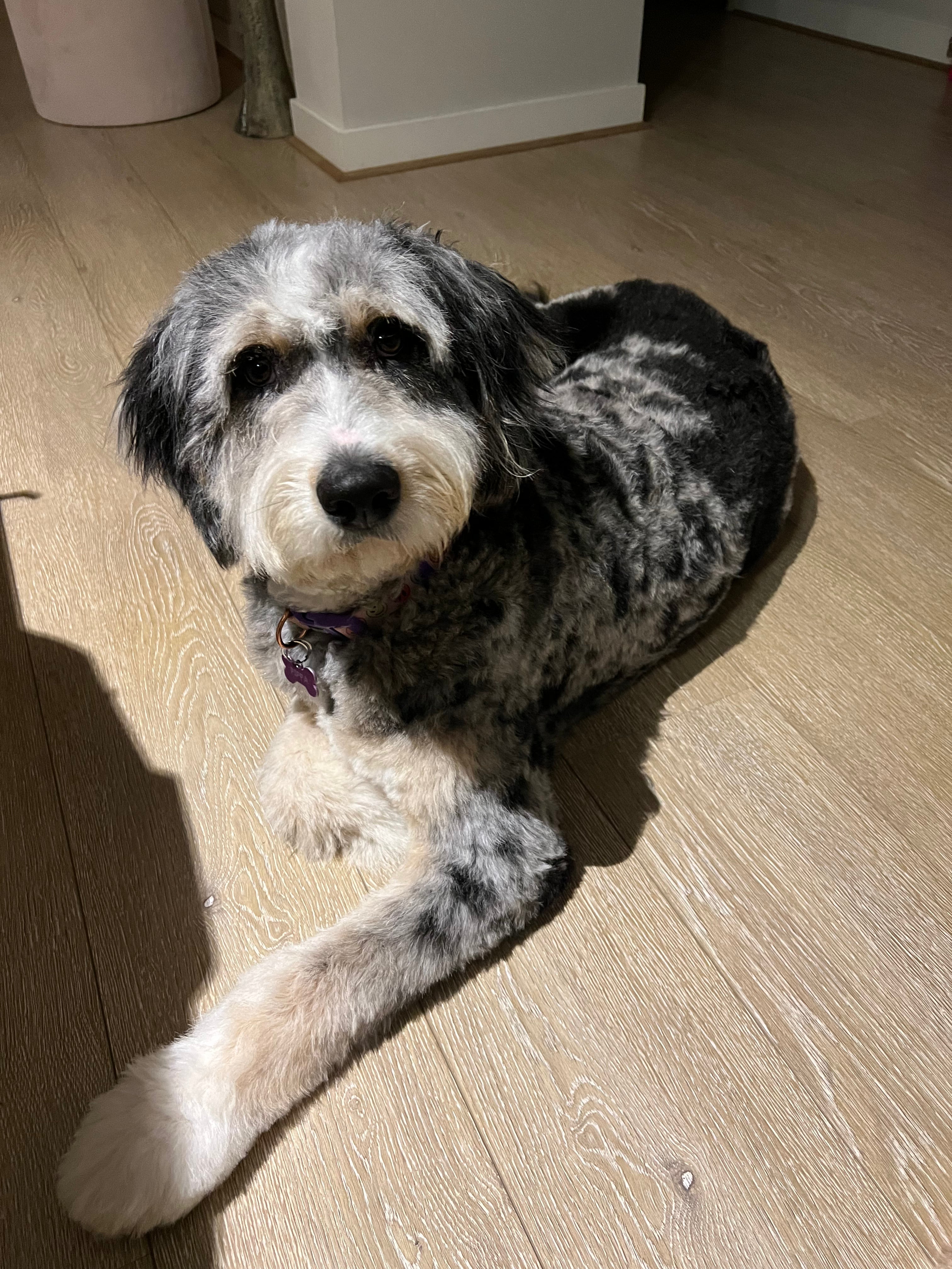 The Aussiedoodle is a breed that we have only added to our program in the last few years (since 2021), with the demand recently shifting to an active non shedding dog with the Aussie Shepherd nature for active families. They are a higher energy level dog, no matter if they are mini or standard Aussiedoodles. They will suit active families, need to be exercised daily, and with thrive from training. We breed First Generation Mini and Standard Aussiedoodles, and they are a very happy, loyal dog. They usually have a typical first generation coat, that is non-shedding (most of the time, otherwise low shedding), and if they are shedding a little bit as puppies sometimes they become non-shedding when their adult coat comes through. They will usually have a wavey/fluffy coat being first generation, not with the tight poodle curl, but it will be wavier than an Australian Shepherd coat.