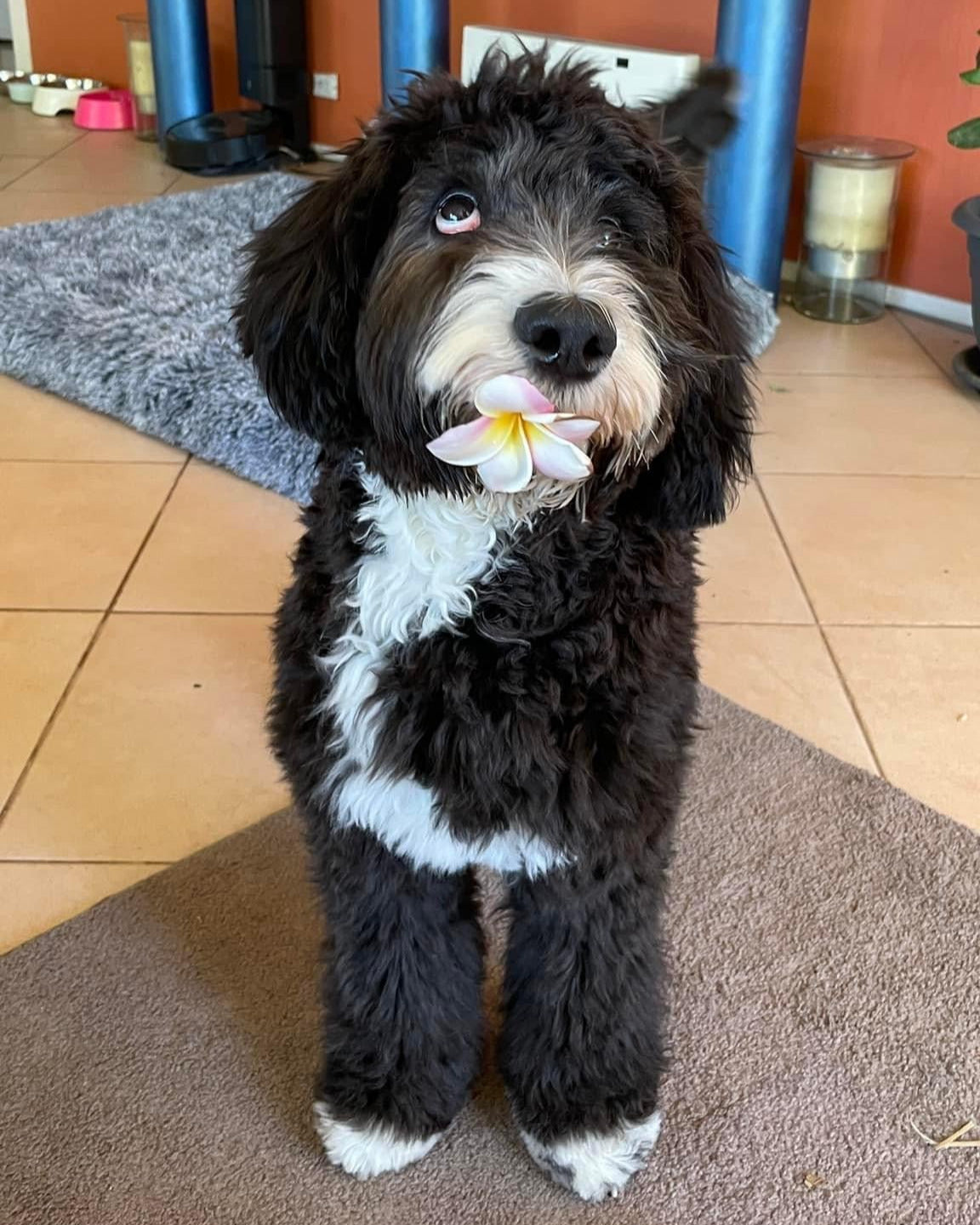 Some Sheepadoodles have a herding instinct and may try to herd small children. Early socialisation and positive reinforcement training is important to minimise this behaviour.