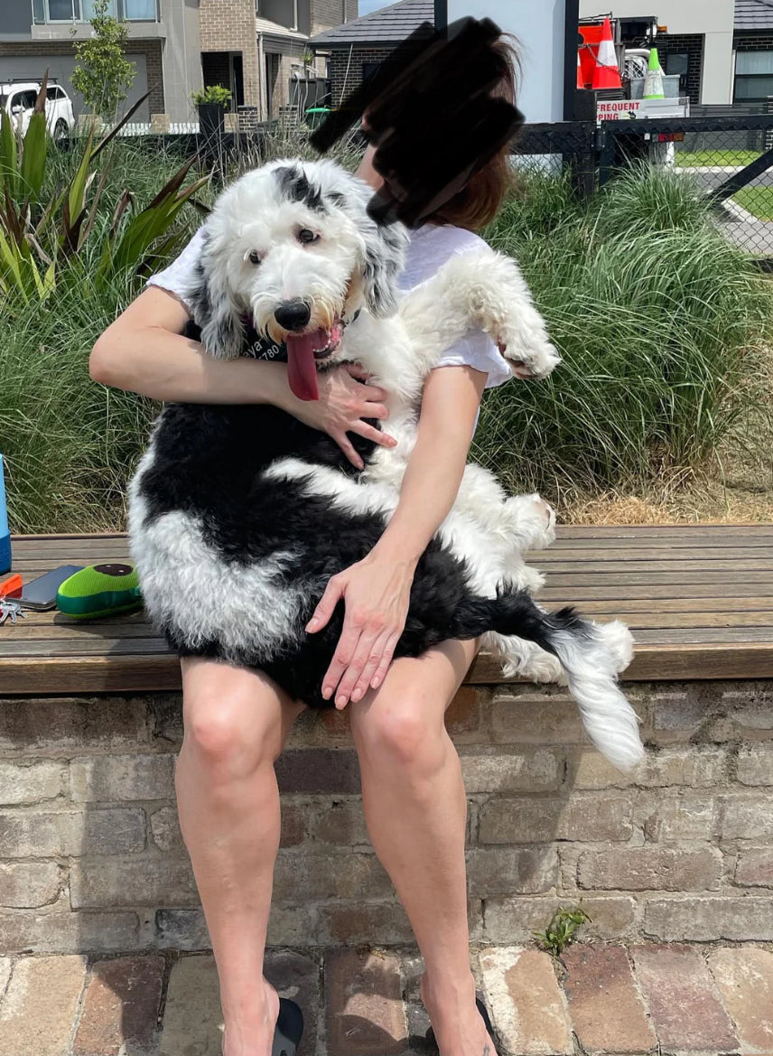 We have been breeding Sheepadoodles since 2021. They are have a calmer temperament than a lot of other large breed dogs, and I personally think they can be quite goofy (our Old English Stud is a very goofy boy!). They are generally less active than an Aussiedoodle, bordoodle, groodle, but will still enjoy a daily walk. They should do a lot of lazing around when they're at home inside or in the backyard. People have bought them that are in apartments but I do think a large breed dog benefits from some sort of yard. If not just to lay out in the sun, but also for a bit of extra space to play with toys and treats.